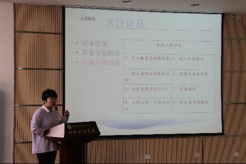 王晓娟老师结合近年来就业现状,联系就业工作实际,分析行业就业形势,解读就业政策与就业途径,举例引导学生如何读懂招聘信息,并为学生总结求职热身要领,强调学生应保持积极乐观的心态,饱满的热情,正确对待就业信息的获取和相关材料的准备,学会结合个人职业观合理选择岗位。同时,王老师结合“生涯彩虹图”,帮助学生正确认识自己,树立正确的职业观,引导学生学会巧妙运用术语与倒推法书写简历和自荐信,并就面试礼仪、面试要点与大家交流。