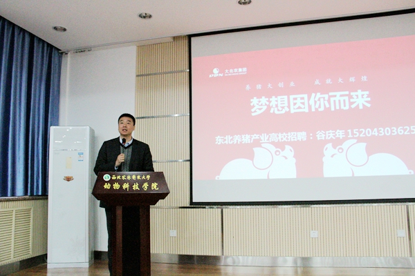 为帮助学生准确把握畜牧行业发展形势,明确就业发展方向,做好职业生涯规划。3月23日,由学校就业指导中心主办,动科炸金花在线玩 承办的就业大学堂之“梦想因你而来”专题讲座在炸金花在线玩 107会议室举办。大北农(东北)集团人力资源总监谷庆年先生应邀担任主讲人,炸金花在线玩 2017届、2018届部分毕业生参加此次报告会。