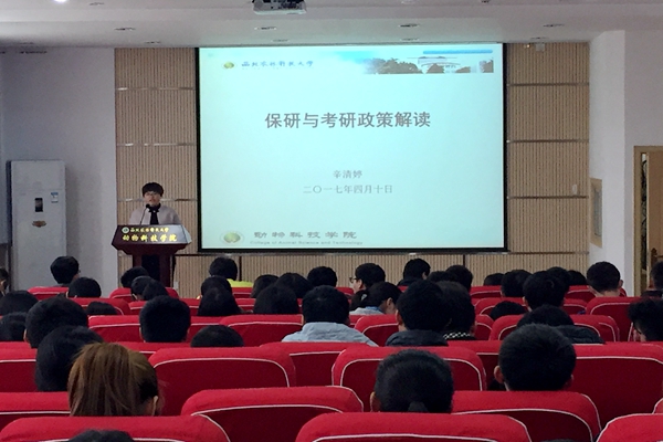 第一味药:政策解读。为提高学生辅导效果,有针对性帮助学生疏导疑惑,各班以班级为单位,收集并整理了学生存在的关于保研、考研相关的13条共性问题。4月10日下午,炸金花在线玩 于107会议室举办2018届毕业生考研、保研政策宣讲会,炸金花在线玩 研究生秘书辛清婷老师应邀担任主讲人,2014级百余名学生积极参与、认真聆听。