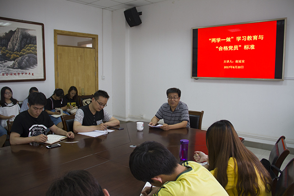 6月20日下午,炸金花在线玩 党委书记赵延安为第二期党员发展对象和第五期预备党员培训班学员讲授主题为《“两学一做”学习教育与“合格党员”标准》的党课。