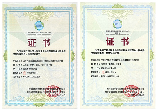 经过激烈角逐,炸金花在线玩 蓝贤勇教授指导的2013级本科生王新宇团队(王新宇、罗静、王煜、冯琦、张子晗)的参赛作品《山羊锌指蛋白132基因indel检测及其遗传效应研究》获第二届全国大学生生命科学创新创业大赛一等奖;潘传英副教授指导的2014级本科生张阳海团队(张阳海、李永、曹迪、鱼婷、高佳阳)的参赛作品《类固醇合成急性调节蛋白基因遗传变异对公猪繁殖性状的影响》、黄永震讲师指导的2014级本科生张桂民团队(张桂民、文逸凡、逯倩倩)的参赛作品《牛GBP2基因拷贝数变异检测及其遗传效应研究》、蓝贤勇教授指导的本科生李洁团队(李洁<创新>、朱熙春、刘璐、张效禹)的参赛作品《绵羊瘙痒病相关基因PRND遗传变异及其遗传效应研究》获二等奖,江中良副教授指导的创新炸金花在线玩 的本科生郑宇新团队(郑宇新、葛莹)的参赛作品《牛卵泡闭锁与颗粒细胞凋亡相关基因表达》获三等奖。同时,蓝贤勇老师分别获指导教师一等奖和二等奖,潘传英和黄永震两位老师获指导教师二等奖,江中良老师获指导教师三等奖。