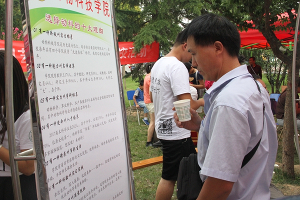学生家长在认真阅读“选择动科的十大理由”