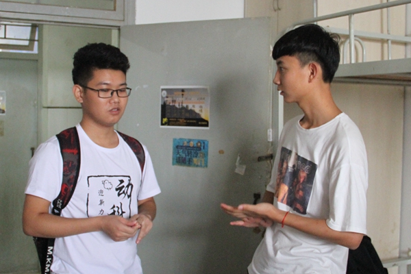 志愿者与新生在宿舍交流