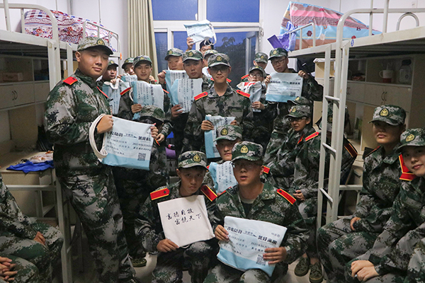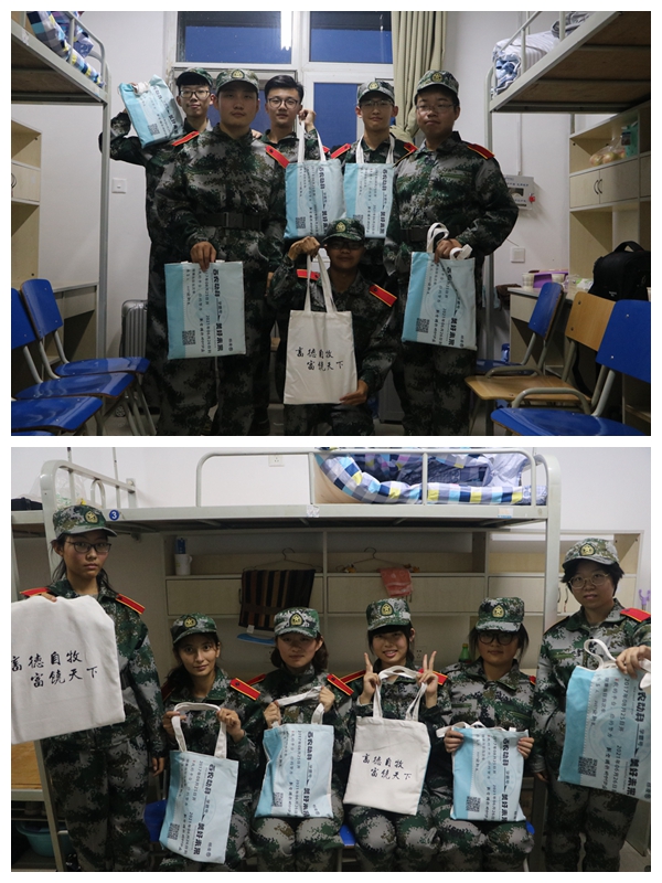 新生们展示手提袋
