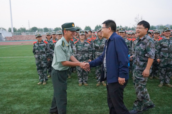 随后,赵延安书记亲切慰问了军训教官,感谢其在军训期间对新生的关心和教导。