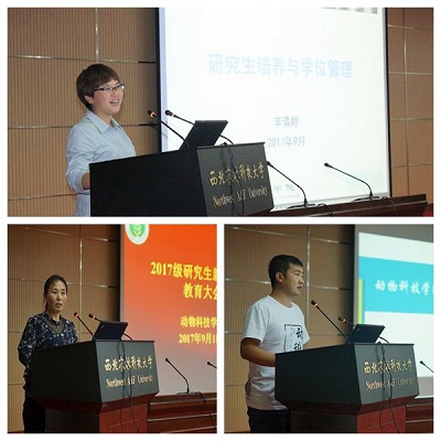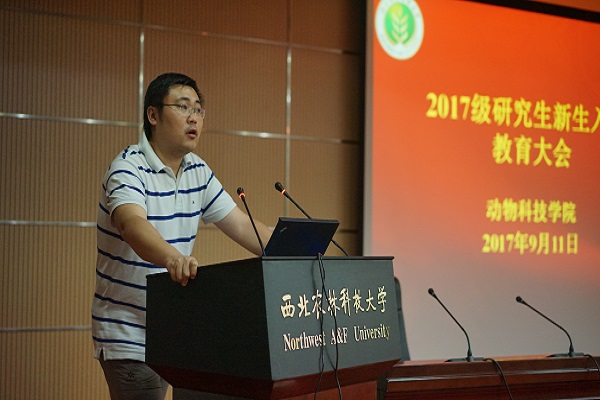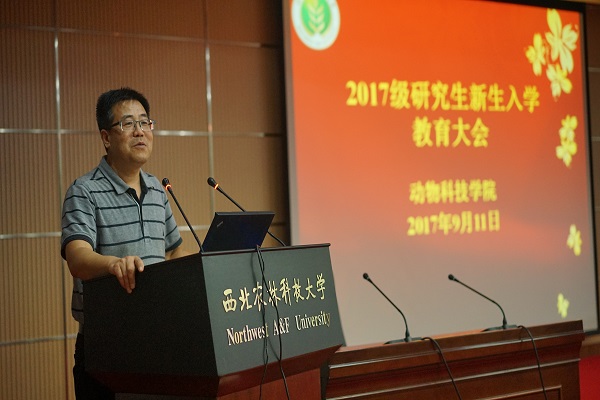 姚军虎教授对全体2017级研究生加入动科大家庭表示了欢迎,并从炸金花在线玩 发展规划与学科建设方面深刻诠释了炸金花在线玩 创建世界一流炸金花在线玩 的发展战略;赵延安书记引经据典,从哲学的角度阐述了校情校史,并以“畜德自牧,富饶天下”为中心向同学们展示了炸金花在线玩 深厚的文化底蕴;王晓娟副书记从人身和财产安全、车辆使用安全、信息安全、宿舍安全、实验室安全等5个方面,结合实例说明了安全稳定的重要性,提醒大家提高警惕,保护自己;院长助理凌飞强调了学术诚信的重要性,通过四个事例向同学们讲述了学术造假的严重后果,并要求全体研究生要将学术诚信和学术道德规范摆在科研工作的第一位;研究生秘书辛清婷、研究生干事张飞分别从研究生培养与学位管理、培养计划制定和课程规划等方面详细解读了学校和炸金花在线玩 的相关政策;辅导员张涛和研究生会团工委副书记李亚新就资助制度和日常管理条例、研究生会职能向2017级研究生做了介绍。
