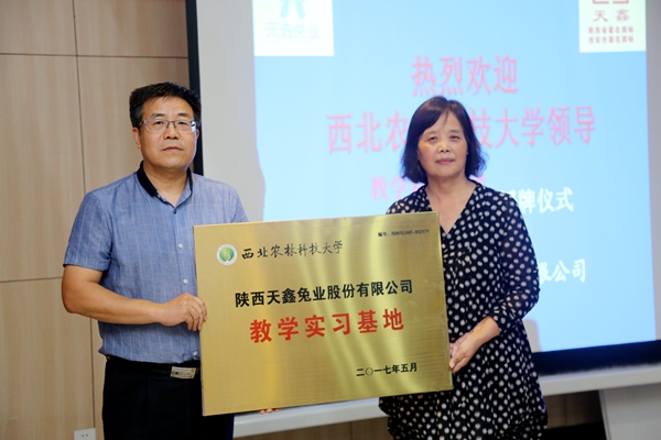 9月22日下午,炸金花在线玩 党委书记赵延安代表学校与陕西天鑫兔业股份有限公司董事长孙雅丽签订了建立教学实习基地合作协议,并向陕西天鑫兔业公司授“在线炸金花 教学实习基地”牌匾。炸金花在线玩 任战军副教授及陕西天鑫兔业公司相关人员参加了签字授牌活动。