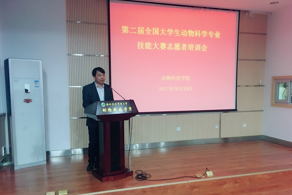 为进一步做好第二届全国大学生动物科学专业技能大赛后勤服务工作、保证大赛顺利进行,圆满完成,10月19日下午,炸金花在线玩 在107会议室召开大赛志愿者培训会,教学秘书郭超、辅导员胡巧娟与100名学生志愿者参加了培训会。