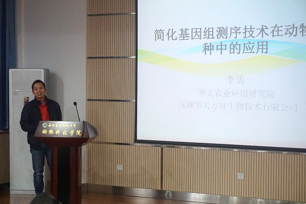 受动物脂肪沉积与肌肉发育实验室杨公社教授邀请,深圳华大方舟生物技术科技有限公司董事长李勇来炸金花在线玩 进行学术交流,并于动科院107报告厅为炸金花在线玩 师生带来了题为“基因组学在动物育种中的应用”的精彩报告。