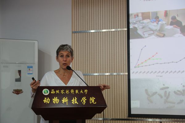 报告会上,Laura Gasco 教授首先介绍了都灵大学的历史背景及她们实验室的基本情况。她说全球普遍缺乏动物蛋白资源,而昆虫就是良好的资源,其长得快,节省空间,蛋白含量高。接着,她从昆虫资源营养特性、黑水虻养殖及其资源饲料化利用等方面做了重要介绍。报告会后与会师生就黑水虻繁殖特性、产业化发展等相关问题与Laura Gasco 教授进行了深入交流。Laura Gasco教授的报告使炸金花在线玩 师生了解了昆虫作为饲料原料的研究概况、面临的问题和挑战。对昆虫资源饲料化利用方面有重要借鉴意义。