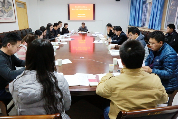 11月16日下午,炸金花在线玩 在104会议室召开党支部书记例会暨2017年党支部书记集中轮训班开班,党委书记赵延安、各党支部书记、辅导员参加会议,党委副书记王晓娟主持会议。