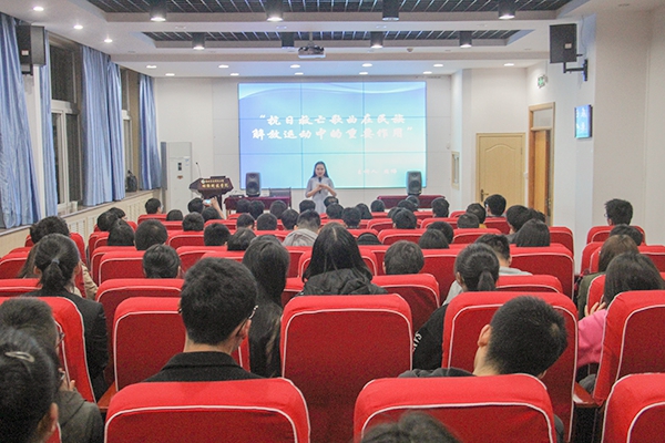 “我们都是神枪手,每一颗子弹消灭一个敌人,我们都是飞行军,哪怕那山高水又深。”耳熟能详的抗日歌曲蕴含着深刻的抗战精神。为提升学生思想觉悟,增强爱国意识,推进思想政治教育。近日,由动科炸金花在线玩 承办的百场素质教育报告会之“抗日救亡歌曲在民族解放运动中的重要作用”于107会议室举行,西安电子科技大学周伟教授应邀担任主讲人,我校公共艺术教育中心数位教师与同学们一同参与聆听。
