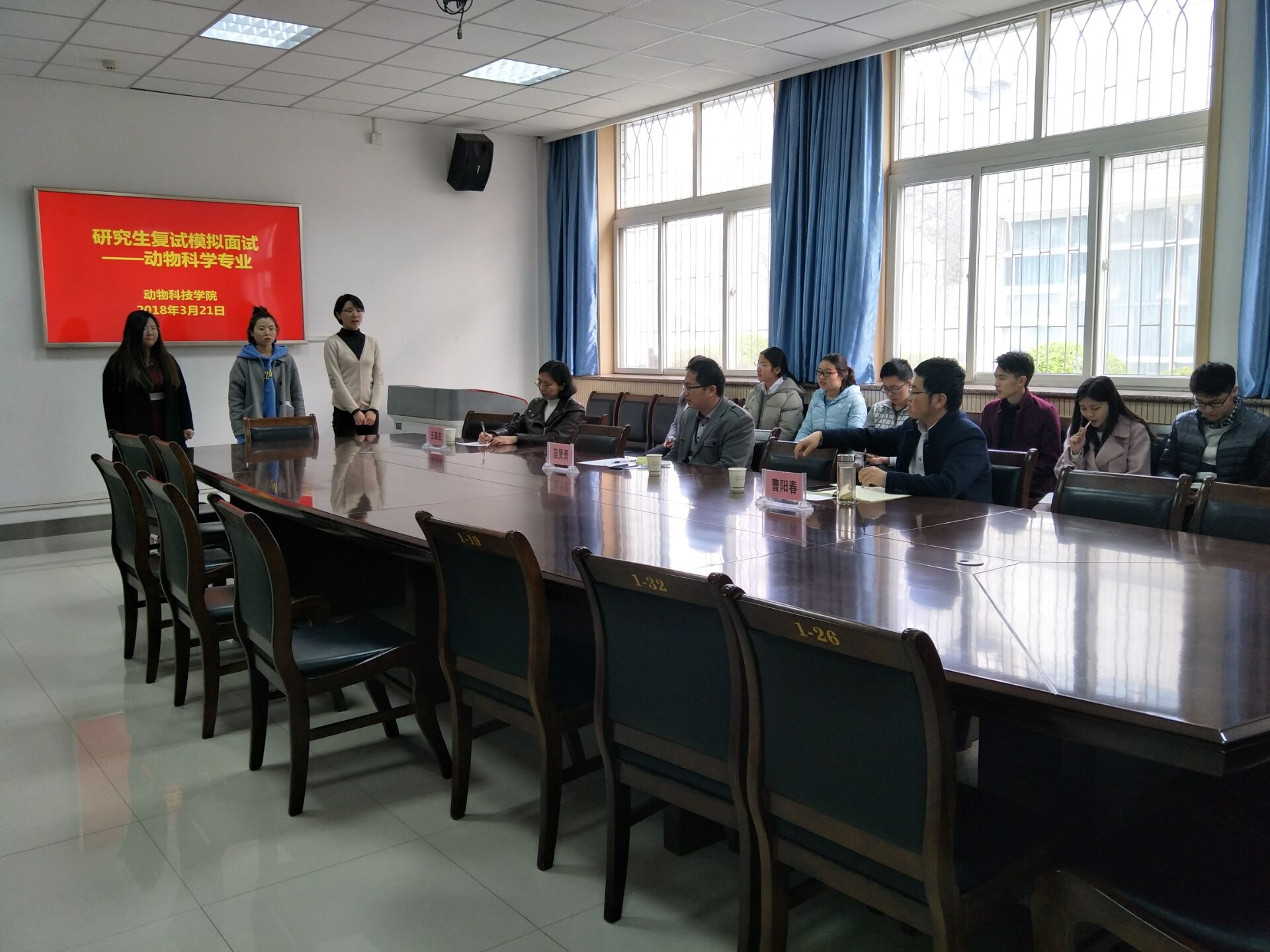 为使考研学子更快速、真实、直接、全面地了解考研复试面试程序,掌握面试技巧,提升复试信心,炸金花在线玩 于3月21日成功举办2018年考研同学模拟面试。本次模拟面试分别邀请到来自动科、草业、水产专业7位专家教授担任评委,共计60余名同学参加。