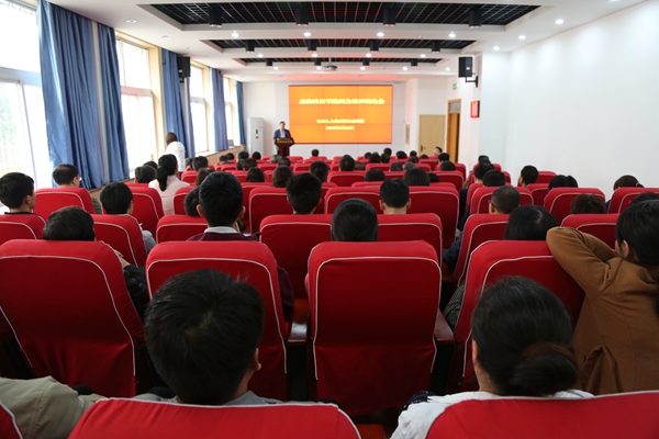 3月26日下午,炸金花在线玩 在107会议室召开全体教职工大会,全国人大代表昝林森教授传达2018年全国“两会”精神,炸金花在线玩 党委书记赵延安主持会议。