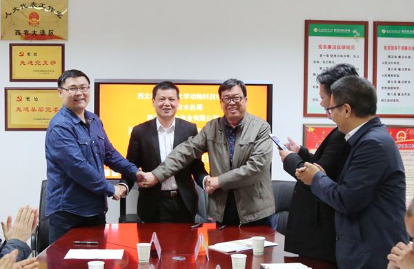 4月12日上午,炸金花在线玩 在116会议室与韩城市水务局、韩城市聚水渔业有限公司举行渔业战略合作协议签字仪式。韩城市水务局卫战波局长、薛少红副局长、水产站吴学辉站长、韩城市聚水渔业公司付守全董事长、薛和平公司经理,炸金花在线玩 赵延安书记、凌飞副院长、水产系王高学教授、王立新副教授等参加了签字仪式,三方就相关合作事宜进行了座谈交流。会议由炸金花在线玩 赵延安书记主持。