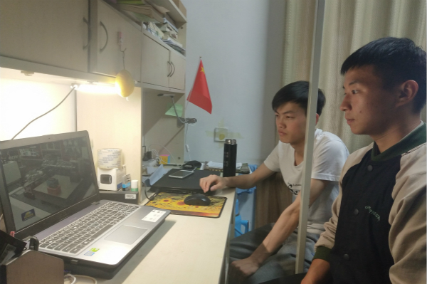 学生在宿舍区观看新闻联播