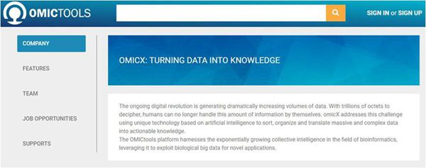 OMICTOOLS(//omictools.com/)是生物科技领域致力于引领大数据革命的国际性平台,主要汇集全球生物信息学领域呈指数增长的集体智慧,并致力于将生物大数据应用于全新领域。