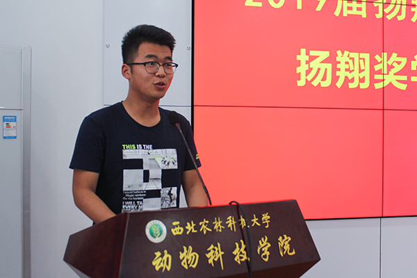 扬翔股份有限公司人力资源中心招聘专员陈令祥宣读了“扬翔奖学金”获奖学生名单及2019届“扬翔班”学员名单。2018届“扬翔班”学员代表雷杰同学发言,对扬翔股份有限公司提供的实习机会表示感谢,并对扬翔股份有限公司表示美好的祝愿。在谈及实习感受时,雷杰说到,企业的核心价值观和家文化让学员们切实感受到温暖,扬翔之行不仅让学员们提高了实践能力,也使学员们认识到自身的不足,今后要将课本知识运用到实践中,多听多看多学,努力弥补自身不足。