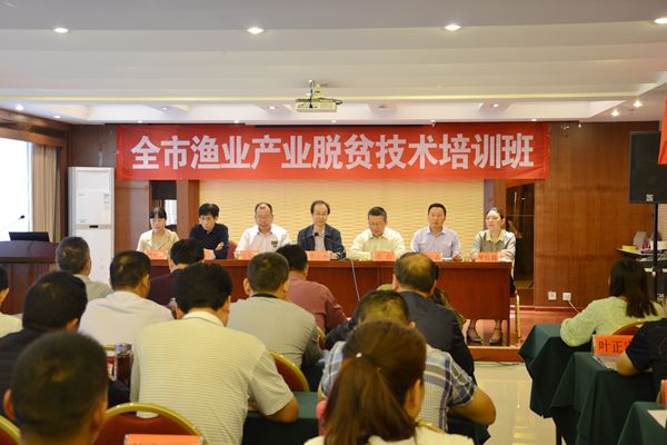 在服务团和商洛市渔政站共同组织的商洛市渔业扶贫技术培训班上,吉红教授、王明祥高级工程师、张星朗研究员等服务团专家分别作了《当前渔业的热点问题与对策》、《冷水鱼养殖技术与渔药的规范使用》和《大鲵健康养殖及水产绿色养殖新模式》的培训报告,受到与会人员的热烈欢迎。