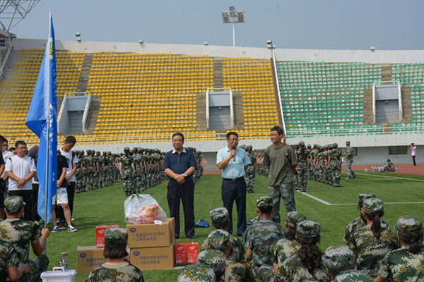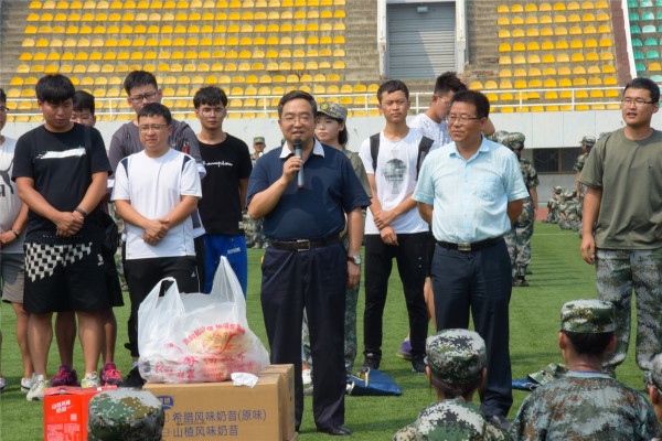8月30日,炸金花在线玩 党委书记赵延安、副院长昝林森一行来到北校区田径场,亲切地慰问了军训教官和参训新生。