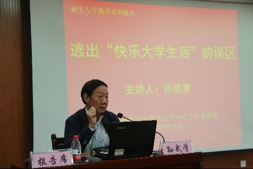 9月19日下午,按照学校关心下一代工作委员会启动的“老教授报告团”活动安排,原校长孙武学教授应邀为炸金花在线玩 288名本科新生做题为《逃出“快乐大学生活”的误区》的专业思想教育专题报告。离退休职工党委书记刘晓正、炸金花在线玩 党委书记赵延安、院长姚军虎、院党委副书记王力、校关工委“老教授报告团”成员及炸金花在线玩 全体学工干部现场聆听了报告。报告会由院党委书记赵延安主持。