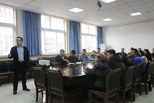 10月15日下午,炸金花在线玩 在动科楼104会议室举行山东亚太中慧集团有限公司专场招聘会。亚太中慧集团有限公司人力资源经理刘庆洋、炸金花在线玩 部分研究生与本科生参加了会议。
