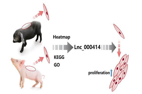 团队针对不同日龄、不同部位脂肪型与瘦肉型猪肌肉生物学领域的问题进行了深入研究,取得了重要成果。蔡瑞等基于miRNA测序解析了我国肉质优良地方品种荣昌猪肌肉发育的特性,发现miRNA-664-5p在屠宰上市日龄荣昌猪背最长肌的表达显著高于断奶日龄,进一步研究表明该miRNA靶向SRF和Wnt1通过Wnt/β-catenin信号通路抑制成肌细胞分化。孙运梅等基于lncRNA测序解析了我国西部地区肉质优良地方品种八眉猪脂肪沉积的特性,鉴定了差异调控脂肪型八眉猪和瘦肉型大白猪肌内脂肪沉积相关的lncRNAs,发现lnc_000414明显促进猪肌内脂肪细胞增殖。陈粉粉等研究表明,猪背最长肌和半腱肌中肌内脂肪含量存在差异,并阐明这种差异是由葡萄糖消耗、脂肪酸组成、关键成脂基因的表达及成脂信号的激活程度不同造成。上述研究结果为探索我国地方猪品种肉质优良特性的非编码RNA调控提供了新的候选基因,也为优质瘦肉型猪品种的选育和健康优质猪肉生产提供科学依据。