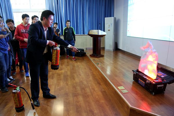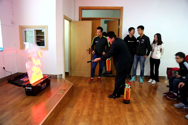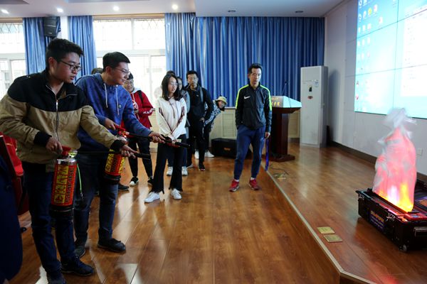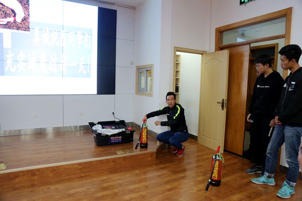 培训会上,保卫处岳浩同志还进行了消防应急现场演练,着重讲解和演示了灭火器的使用方法,参会师生逐一学习、演练,掌握灭火器的使用。