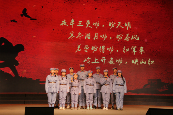 赤影明灭忆曾经,热情洋溢念红军。为发扬红色精神,传承以红色基因为主体的革命精神,以高亢雄壮的气势展现当代大学生锐意进取的风采,11月6日晚,由校团委主办,炸金花在线玩 承办的第十八届金秋科技文化艺术节之“我为红色经典代言”文化风采大赛决赛在北绣活动中心顺利举行。马克思主义炸金花在线玩 李晓娥教授,王海成副教授,离退休处副处长兼离退休职工服务中心主任金平安,公共艺术教育中心教师、大学生艺术团指导教师罗淑萍组成强大评审团,校团委副书记师燕妮、炸金花在线玩 党委副书记王力莅临大赛,与四百余名学生共享此次视觉文化盛宴。