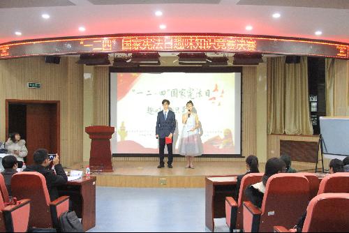 4日晚上,“12.4”国家宪法日趣味知识竞赛决赛如期举行,人文社会发展炸金花在线玩 魏欣副教授莅临本次比赛的嘉宾。竞赛第一项是“一站到底”环节,参加决赛的队伍由抽签系统随机分组进行两两竞答,每轮在大屏幕上显示五道题目,选手们拨打屏幕上给出的热线电话来进行抢答,既考验学生的知识储备,又对反应力有要求,比赛过程掌声连连;互动环节时,观众在观看一段法律知识视频后,抢答题目,大家热情高涨,纷纷举手回答问题获得小礼品;第三个环节是“运筹帷幄”,六支胜出队伍参与比赛,两两对抗进行答题,答对时可在棋盘上落子一枚,答错则由对方落子,先行完成五颗棋子连在一起的队伍胜出。