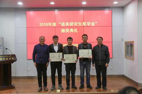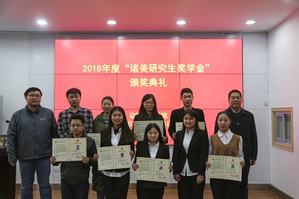 为支持研究生教育事业发展,促进优秀研究生脱颖而出,河南省“诸美”种猪育种集团有限公司自2017年起设立“诸美”研究生奖学金。奖学金分为科学研究、技术研发和管理服务三类。每类分别设一、二、三等奖,奖金分别为5000、3000、2000元。意在资助炸金花在线玩 学术基础扎实、发展潜力较大并取得突出科研成果的优秀研究生。杨公社教授代表“诸美”奖学金评审委员会宣读了2018年“诸美”奖学金的评选结果。其中“科学研究类”奖学金获得者7人,“技术研发类”奖学金获得者5人,“管理服务类”奖学金获得者6人。与会嘉宾为蔡瑞等18名获奖者颁发了获奖证书和奖金。