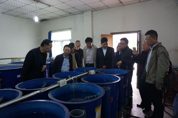 蔡斌一行先后参观了试验站秦巴山区土著鱼类活体资源库、循环水养殖系统、匙吻鲟高效养殖池塘、室内外苗种培育车间、渔虻链示范中心等试验示范设施及正在开展的试验示范工作,了解了国家级星创天地孵化的大学生创业企业安瀛公司所开展的观赏鱼生产情况。炸金花在线玩 刘超研究员就试验站七项主推技术、四大主推品种及领衔建设的陕西省水产业技术创新战略联盟、陕西省科技特派员水产养殖产业技术服务团等所开展的工作进行了介绍。并对水产站的创新平台、团队及试验站建站以来在推动区域经济发展,精准扶贫等方面所做的工作向蔡斌一行做了简要汇报。