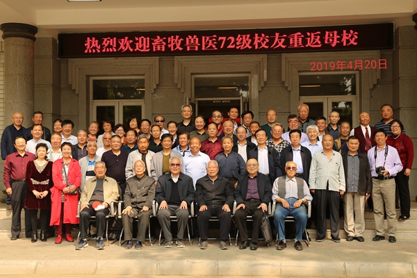 草长莺飞,姹紫嫣红,最美人间四月天,炸金花在线玩 、动物医炸金花在线玩 迎来一大盛事——畜牧兽医72级五十余位校友毕业44年后相聚西农。原任课教师王强华、崔中林、贺普霄、曹光荣、马章全、雷天富,炸金花在线玩 党委书记曹军会、动物医炸金花在线玩 副院长杨增岐,畜牧兽医72级校友60余人相聚一堂,共叙难忘师生情。